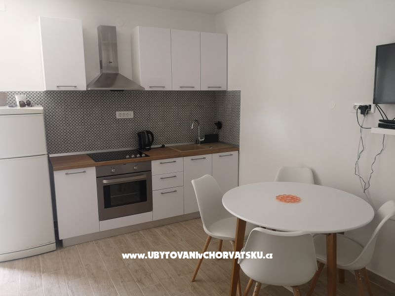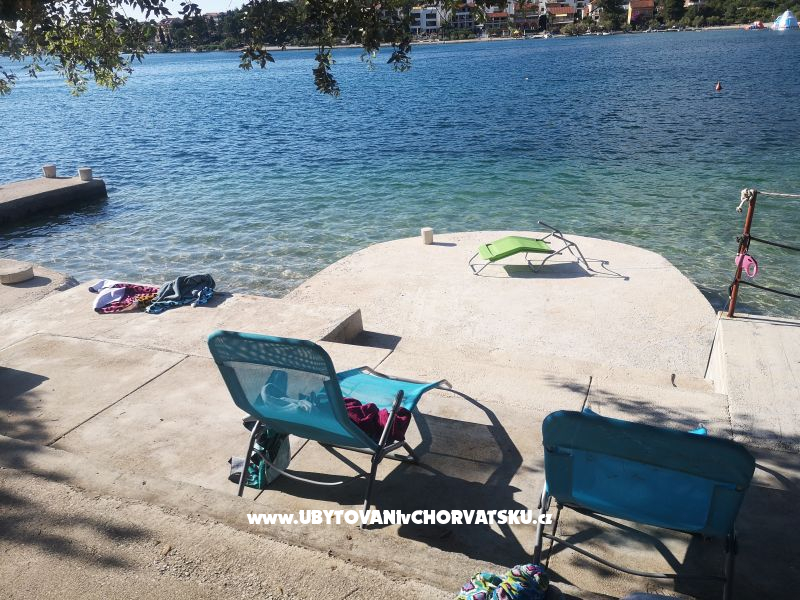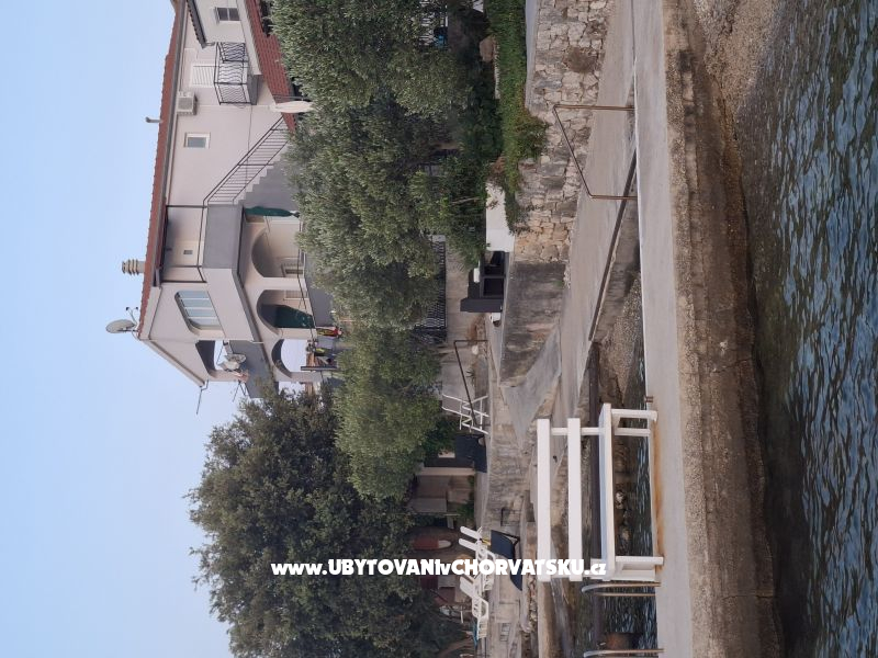 Apartmány na nejlepší lokaci, jen 8 metrů od moře a s velkými terasami s výhledem na moře. Ideální pro rodiny s dětmi. Před domem není silnice, jen krásná pláž a přírodní stín. Zajištěno parkování a možnost použití grilu. Vzdálenost 8km od krásného Primoštenu a 2 národních parků - Krka a Kornati.