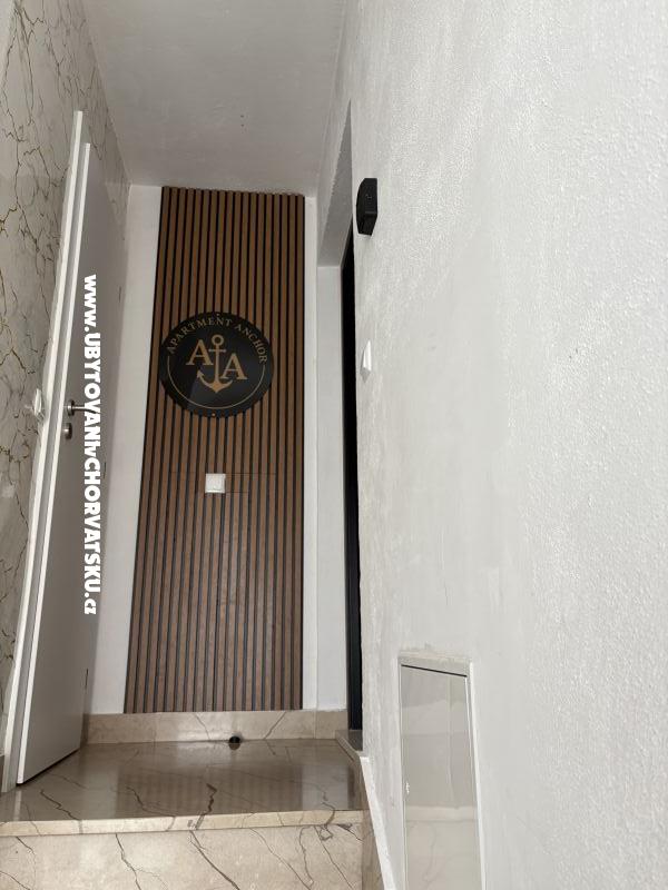 "Ap. Anchor" - Byt se nachází v blízkosti moře v samém centru Slatiny na ostrově Čiovo. Má tři pokoje a tři balkony s krásným výhledem na moře. Byt je nový a moderně vybavený. Má dvě koupelny a další toaletu.