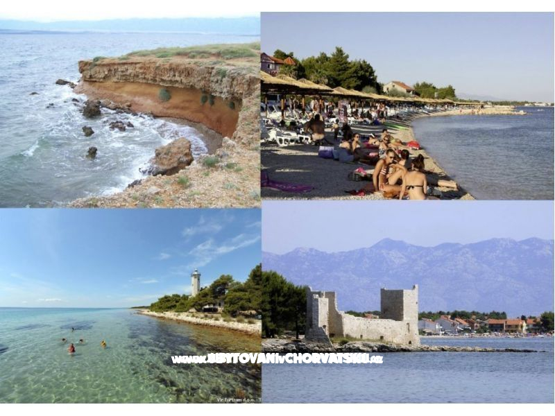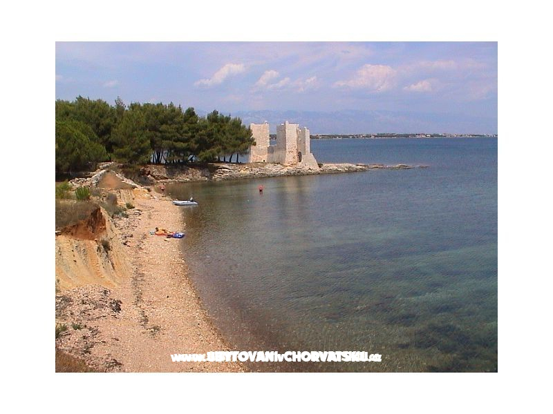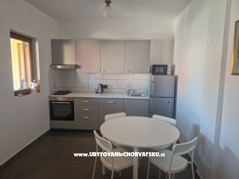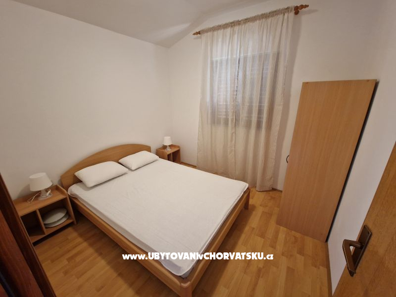 "Apartman 1" - K pronájmu je apartmán se dvěma ložnicemi, kuchyní, koupelnou, obývacím pokojem a terasou o rozloze 20 m2, který může ubytovat čtyři osoby. V případě ubytování 4+1 nebo 4+2 je cena 15 € na osobu. Parkovací místo ve dvoře, k dispozici gril.